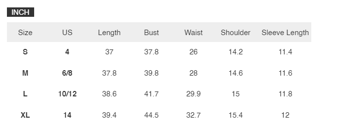 Size | US | Length | Bust | Waist | Shoulder | Sleeve Length |