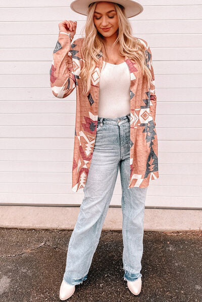 Geometric Open Front Long Sleeve Cardigan